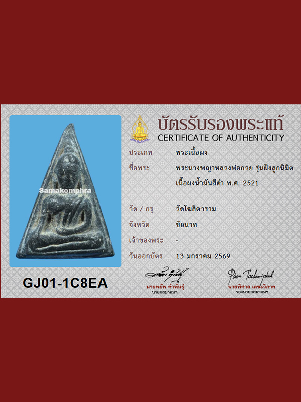 **關於 龍婆乖 Wat Khosittharam 寺廟 製作的 Phra Nang Phaya(พระนางพญา)資訊,佛曆 2521 年**