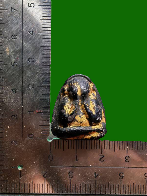 – Powder mixed with lacquer coating (phong phutthakhun kluk rak; lacquer-dipped or lacquer-coated, often gold-leafed originally) — mixed with old powder from Luang Pho Kaew, Wat Khrueawan (serving as DNA from the Luang Pho Kaew lineage).