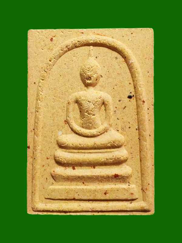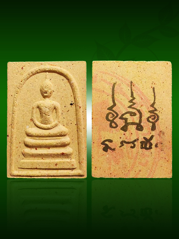 The main material commonly seen is a yellowish-orange tinted composition (often called “golden yellow” or “yellow material”). Other materials are extremely rare in the current market due to the limited production quantity. This series was made in the early phase of the monk’s amulet creation, before the famous “Yaew Chani” Phra Somdej series that became widely known later.
