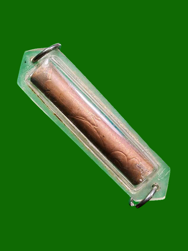 Creation of the Hand-Inscribed Takrud Most of Luang Phor Chamnian’s Takrud are hand-inscribed directly by him, not cast or molded like ordinary amulets. He would use metal sheets (such as brass, silver, or copper) or special materials like tiger skin (especially forehead tiger skin in the early period) as the base, then inscribe mantras, yant, and spells with his bare hand. The script has a distinctive curved, beautiful, and powerfully unique style.